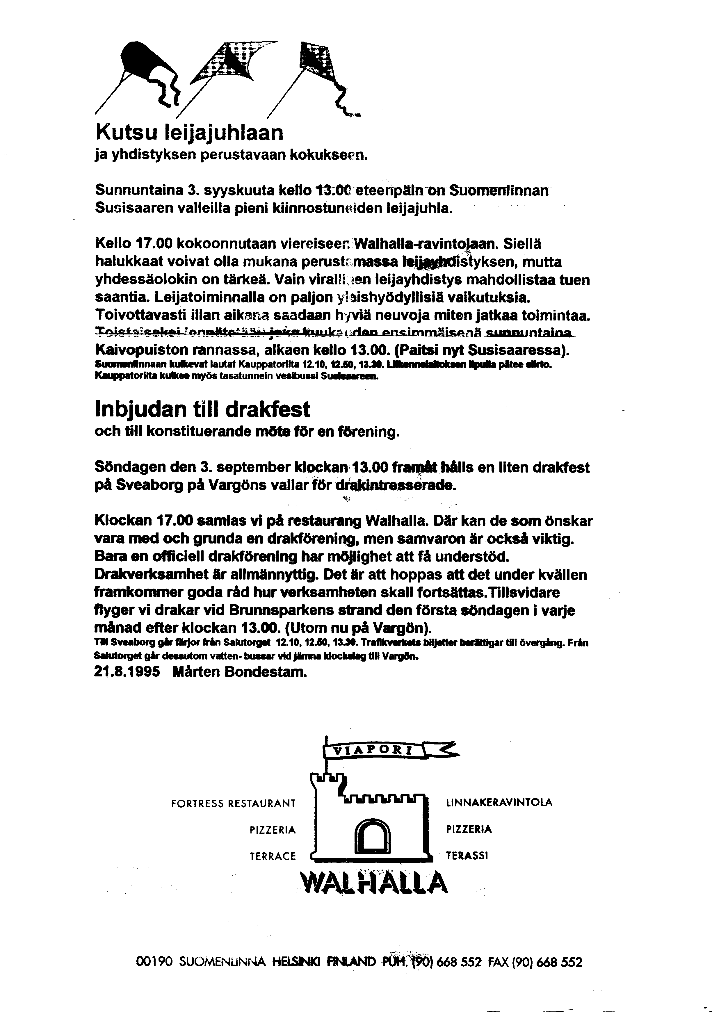 Leijaseuralaiset kokoontuvat äitienpäivän piknik retkelle lennättelemään leijoja. Tule mukaan ihailemaan Leijaseuran leijoja tai lennättelemään omaa leijaa!